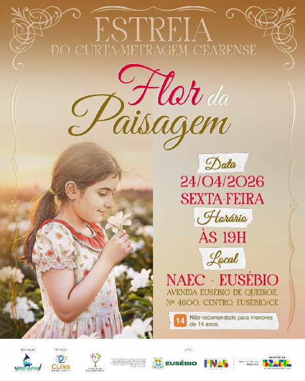 Como parte dessa celebração, o curta terá sua estreia no Eusébio nesta sexta-feira (24/04), às 19h, no Núcleo de Arte, Educação e Cultura (NAEC), equipamento cultural do município que tem se consolidado como espaço de valorização da arte e da cultura local.