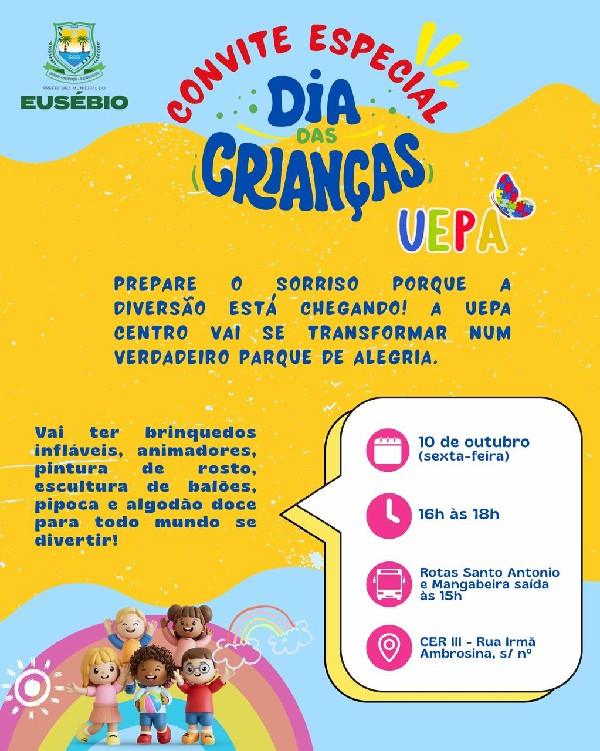 A programação inclui brinquedos infláveis, animadores, música, brincadeiras, pintura facial, distribuição de lanches e muitas surpresas, tudo preparado com carinho pela equipe da unidade. Mais do que um momento de diversão, a ação tem como objetivo estimular a convivência, a inclusão e o acolhimento das crianças atendidas no serviço e de seus familiares, reforçando o compromisso da Prefeitura de Eusébio com o bem-estar e o cuidado integral de cada usuário.